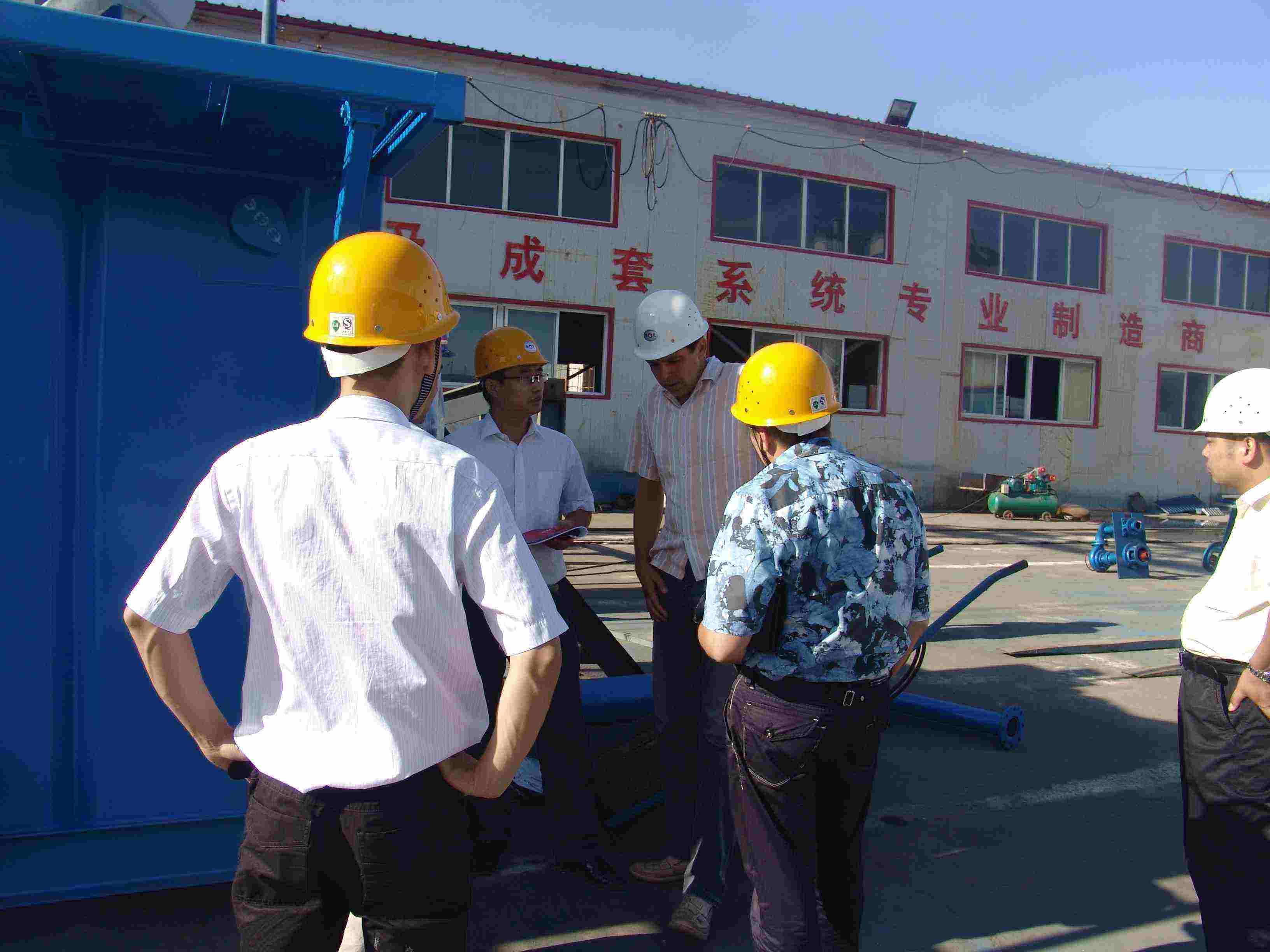 烏克蘭客戶來我公司洽談一套車載鉆機ZJ30CZ的固控系統和一套設備,客戶來到我公司考察并且看了生產車間表示很滿意。我公司正在API年審,整體的生產工藝流程烏克蘭客戶給予了高度的評價。并且當場把這個方案定下來。除了一套車載鉆機ZJ30CZ的固控系統外,客戶還定購了我公司的一套設備。包括:除砂除泥一體機GNZJ83-3、離心機LWF450×842N、泥漿攪拌器JBQ11kw,供漿泵和泥漿槍NJQ50-3等