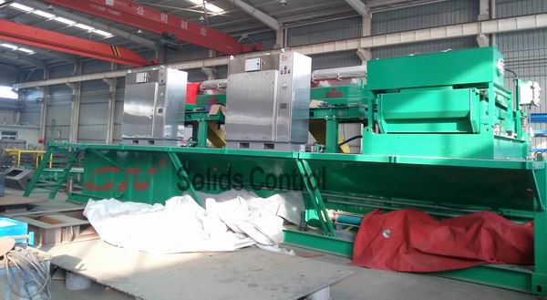 固控系統(tǒng)對(duì)鉆井過(guò)程中鉆井液中的固體顆粒進(jìn)行處理,減少液體中的固體含量,很好的維護(hù)鉆井液性能,滿足鉆井液的循環(huán)、加重、剪切及事故處理等特殊情況下的要求,可有效提高鉆井作業(yè)的效率和安全性。冠能固控剛剛完成了一套以臥螺離心機(jī)為核心處理設(shè)備的泥漿固控系統(tǒng),用于東南亞的采礦項(xiàng)目。 該系統(tǒng)由2級(jí)分離設(shè)備組成,配置構(gòu)成是如下: 1、GNZS594E-HB型振動(dòng)篩用于大顆粒的固相分離,此型號(hào)的振動(dòng)篩也可以用于泥漿的干燥,可調(diào)的激振力, 大可達(dá)8.5G,4片篩網(wǎng)的結(jié)構(gòu)適用于要求處理量更大的鉆井工程中。 2、兩臺(tái)臥螺離心機(jī)用于細(xì)小顆粒的固相分離,第一個(gè)臺(tái)離心機(jī)主要以中速為主,去除泥漿中7個(gè)微米以上的固相顆粒,減少液相中的固體含量,第二臺(tái)高速變頻離心機(jī),高達(dá)3200轉(zhuǎn)/分鐘的轉(zhuǎn)速,可以很好的除去泥漿中2~5個(gè)微米以上的超細(xì)固體顆粒,使鉆井泥漿更清潔。 3、螺桿泵主要用于給離心機(jī)進(jìn)行供漿,水平安裝在泥漿罐的側(cè)面,為罐面設(shè)備的安裝及運(yùn)行過(guò)程中的操作,節(jié)省了很大空間。